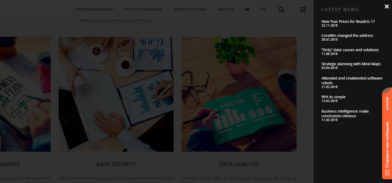 Only clean components for best usability: news and blog, calendar and search, separeted well structured pages for each software product in CoreWin's portfolio. Plus, bright Orange for "About Company" page, 'cause guys are young and energetic. We wanted to show it.